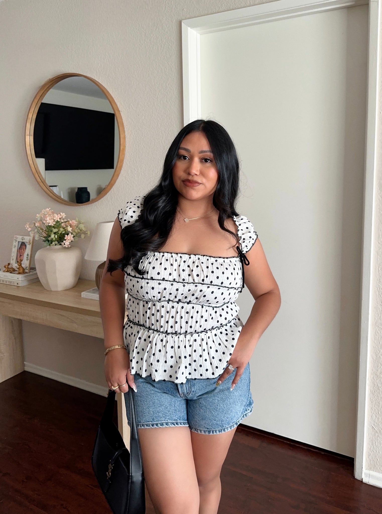 White and black polka dot top